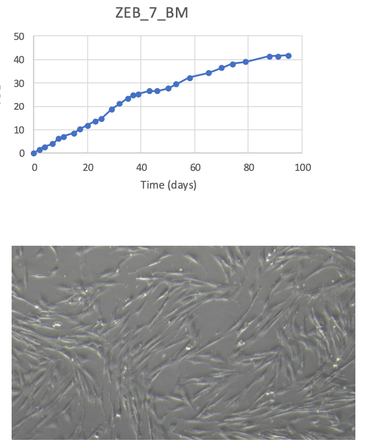 סוגי תאי גזע מזנכימליים שמקורם במח עצם הם דביקים ושומרים על חיוניות מעל שמונים אחוז לאחר הקפאה. תאים אלו מגיבים לטיפולים בגורמי גדילה דיפרנציאליים והורחבו בהצלחה דרך 27 מעברים בתרבות מעבדה. כל בקבוקון מכיל מיליון תאים חיים המוסמכים חופשיים מחיידקים, פטריות ומיקופלסמה. חבילת פרוטוקול מלאה כלולה, המכסה שלבי הפשרה, זריעה והתמיינות.
